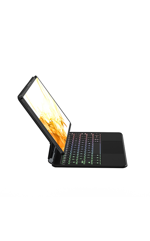Tablet kompüteriSehrli klaviaturaÇox bucaq düzəlişini dəstəkləyən üzən bir stend dizaynını qəbul edir. İstifadəçilər daha rahat bir görüntü və əməliyyat təcrübəsi əldə etmək üçün iPad-in görüntü bucağını öz ehtiyaclarına uyğun olaraq tənzimləyə bilərlər. Bu vaxt, üzən dizayn da havalandırma və istilik dağılması təsirini yaxşılaşdırmağa və məhsulun xidmət həyatını genişləndirməyə kömək edir.